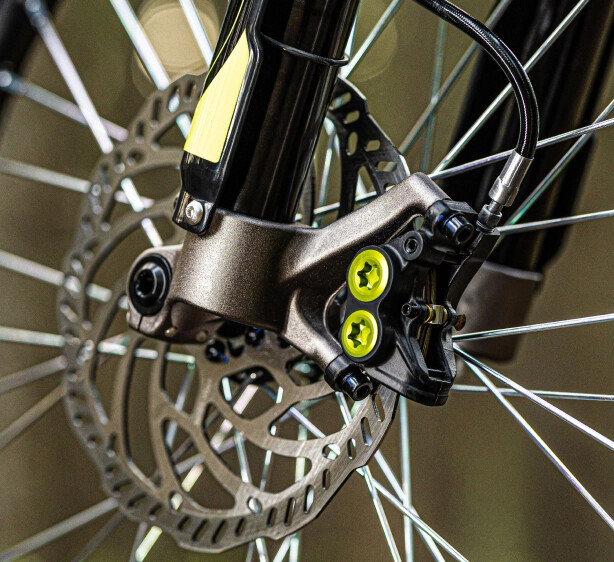 The upgraded one-piece forged opposed 4-piston brake system has thickened the brake hose and greatly improved strength, and the brake fluid has been increased to ensure that each piston can push the brake pads evenly and forcefully, so as to provide stable and powerful braking power.The braking feel is light and linear, and it only needs one finger to hold in place, making your exploration trip more comfortable and worry-free!