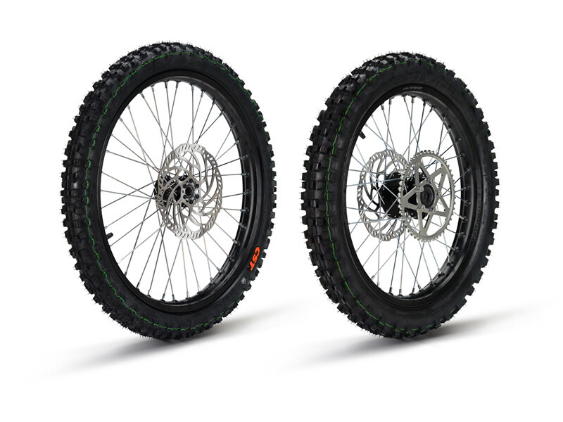The newly upgraded front 70/100-19, rear 3.00-18 wheel set, dense tire teeth to ensure strong grip. Compared with the previous generation the rear rim is changed to 18 inches while the outer tire diameter remains the same,resulting in a larger tire width and thicker wall, increasing comfort while further improving of-road performance