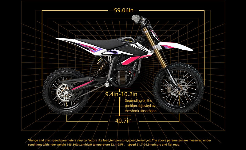 2 options available for the cushion thickness, front fork and rear shock installation height is adiustable, and the seat height can be adjusted from 630mm to 710mm in multi-ways,Built to grow with you.
